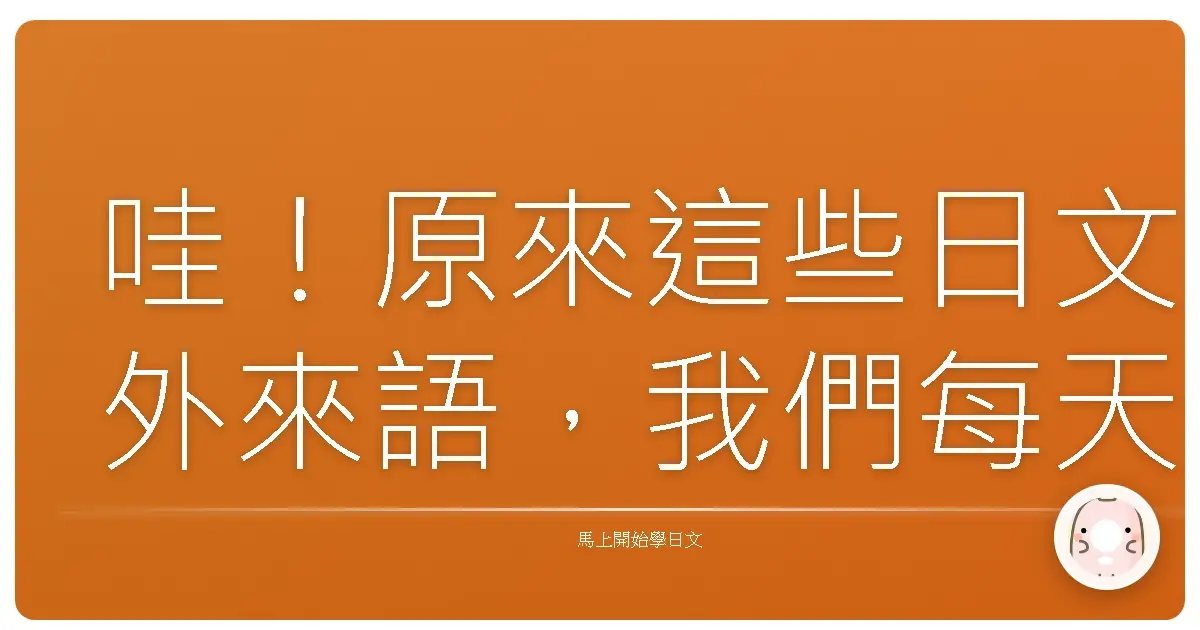 你有沒有覺得,有些詞彙好像從小聽到大,自然到不行,根本沒想過它們其實是「舶來品」呢? 說到「舶來品」,這個詞本身也是一個充滿時代感的詞語,以前的人會用來形容從國外進口的東西,現在我們比較少用,但偶爾還是會聽到老一輩的人說。 今天,我們就來聊聊那些隱身在我們生活中的日文外來語,保證讓你驚呼連連!準備好了嗎?一起來挖寶吧!